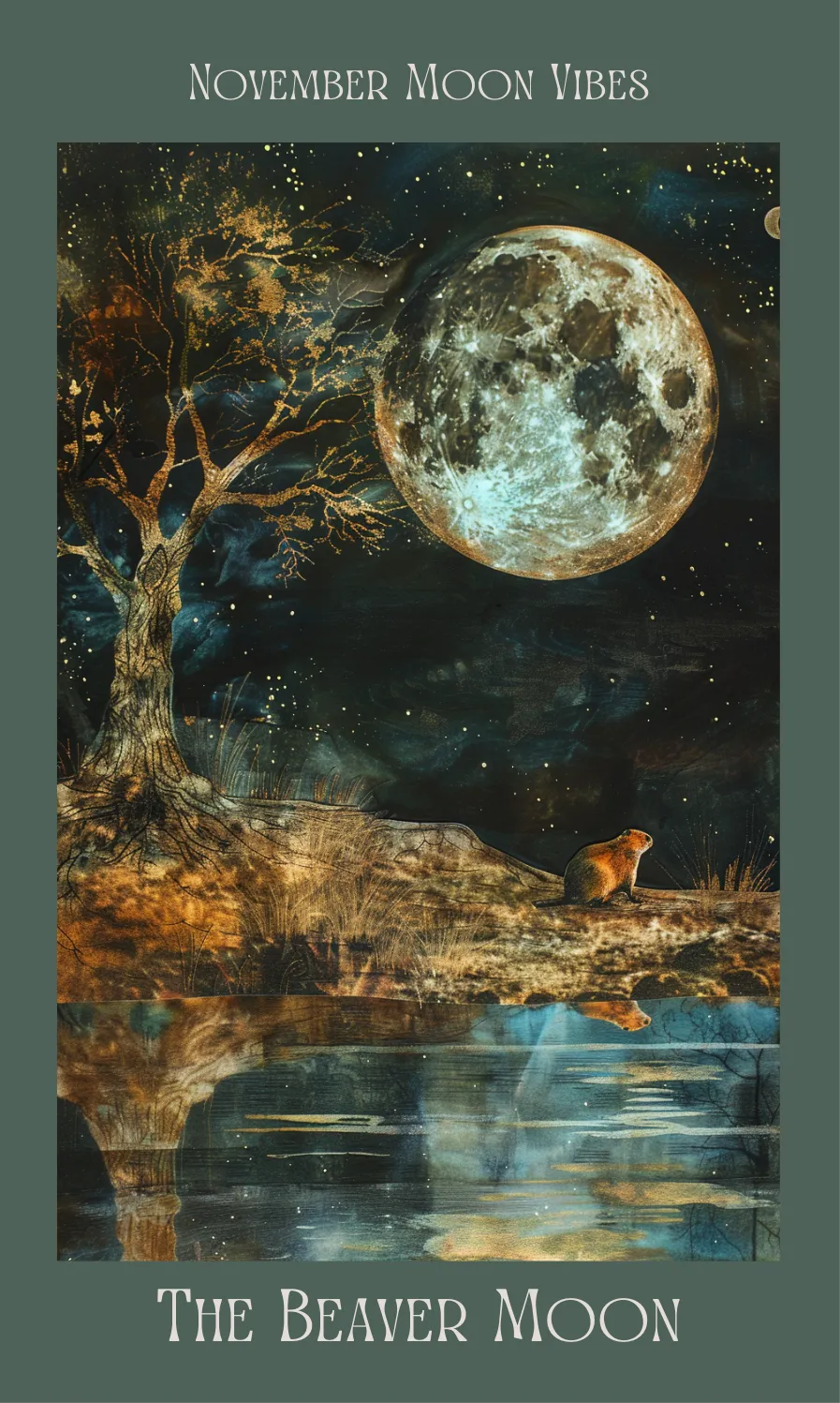 This Moon reminds us that, just like the beaver, we must work with purpose and determination, but also know when to release and trust. What structures, relationships, or habits need strengthening? What can be released as you prepare for the next chapter? The Beaver Moon helps us navigate these decisions with clarity and grounding energy.