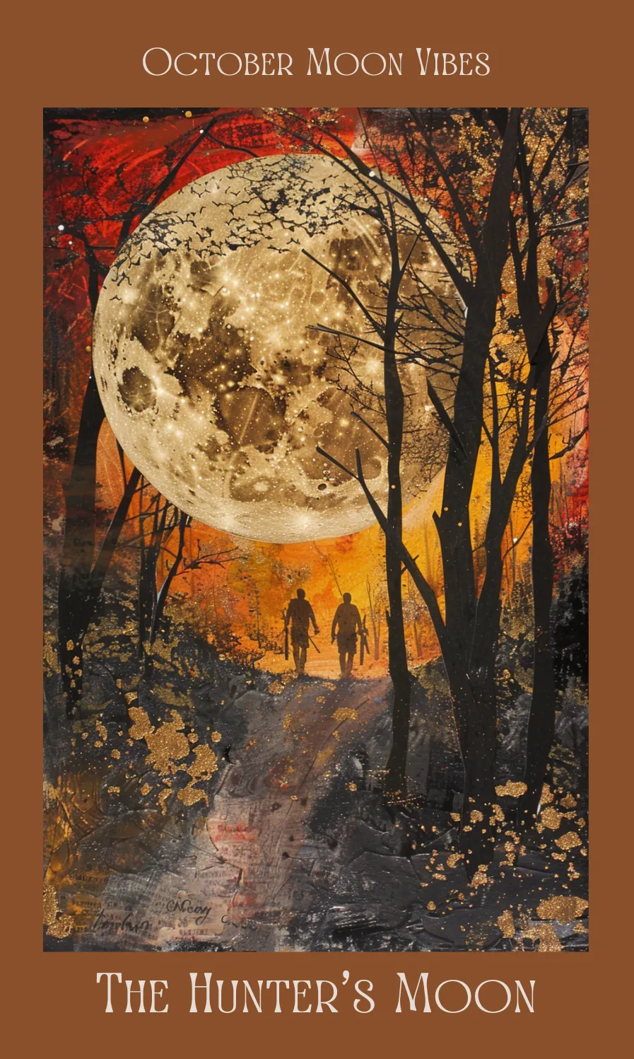 This is a time to nurture discernment. As the veil between the physical and spiritual worlds thins during the autumn months, the Hunter’s Moon guides us to tap into our intuitive instincts, much like the hunter who reads the signs of the forest. Now is the moment to connect with our inner wisdom, sharpening our focus on what truly matters.