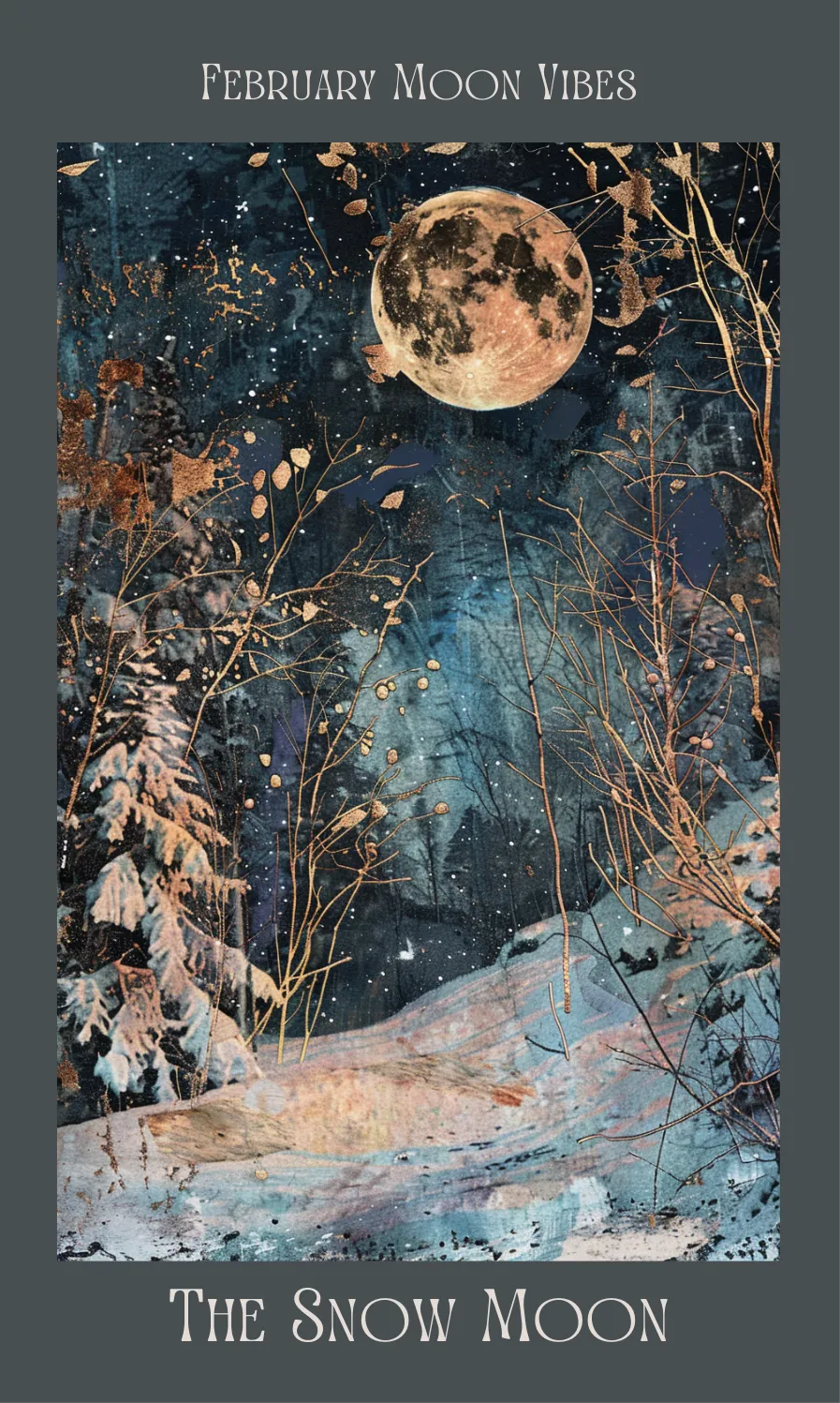The Snow Moon blankets us in gentle love and compassion, illuminating the path of our self-love journeys. Its radiant glow invites us to release relationship wounds, shed what no longer serves us—whether old fears, limiting beliefs, or emotional burdens—and make space for fresh beginnings. Like the serenity of freshly fallen snow, this moon offers a moment of stillness to reflect and reconnect with our true selves.