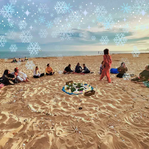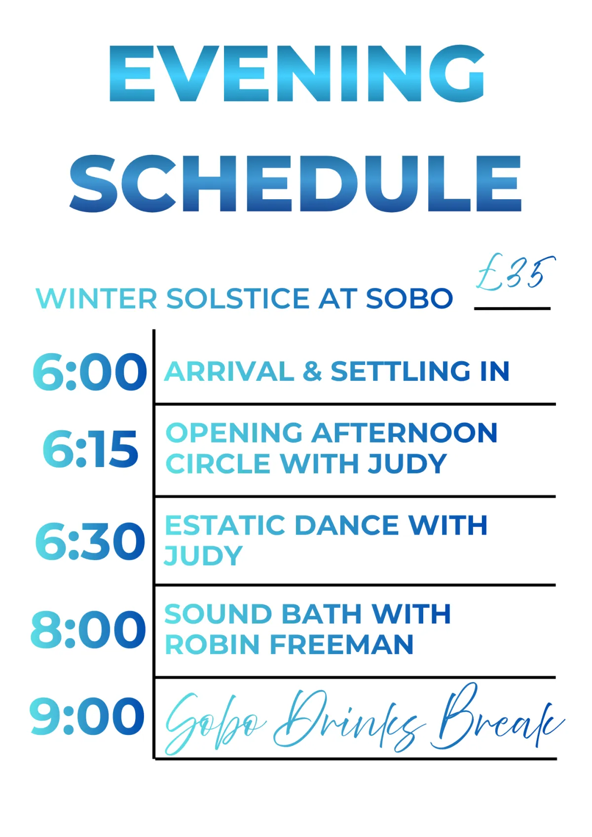 The Sound Bath offers a moment of stillness after the movement and expression of the day, a space to integrate all you’ve experienced, to ground into peace, and to awaken to the renewed light of the season. Simply close your eyes, breathe, and let the sounds wash through you, a final act of surrender, rest, and renewal under the Winter Solstice sky.