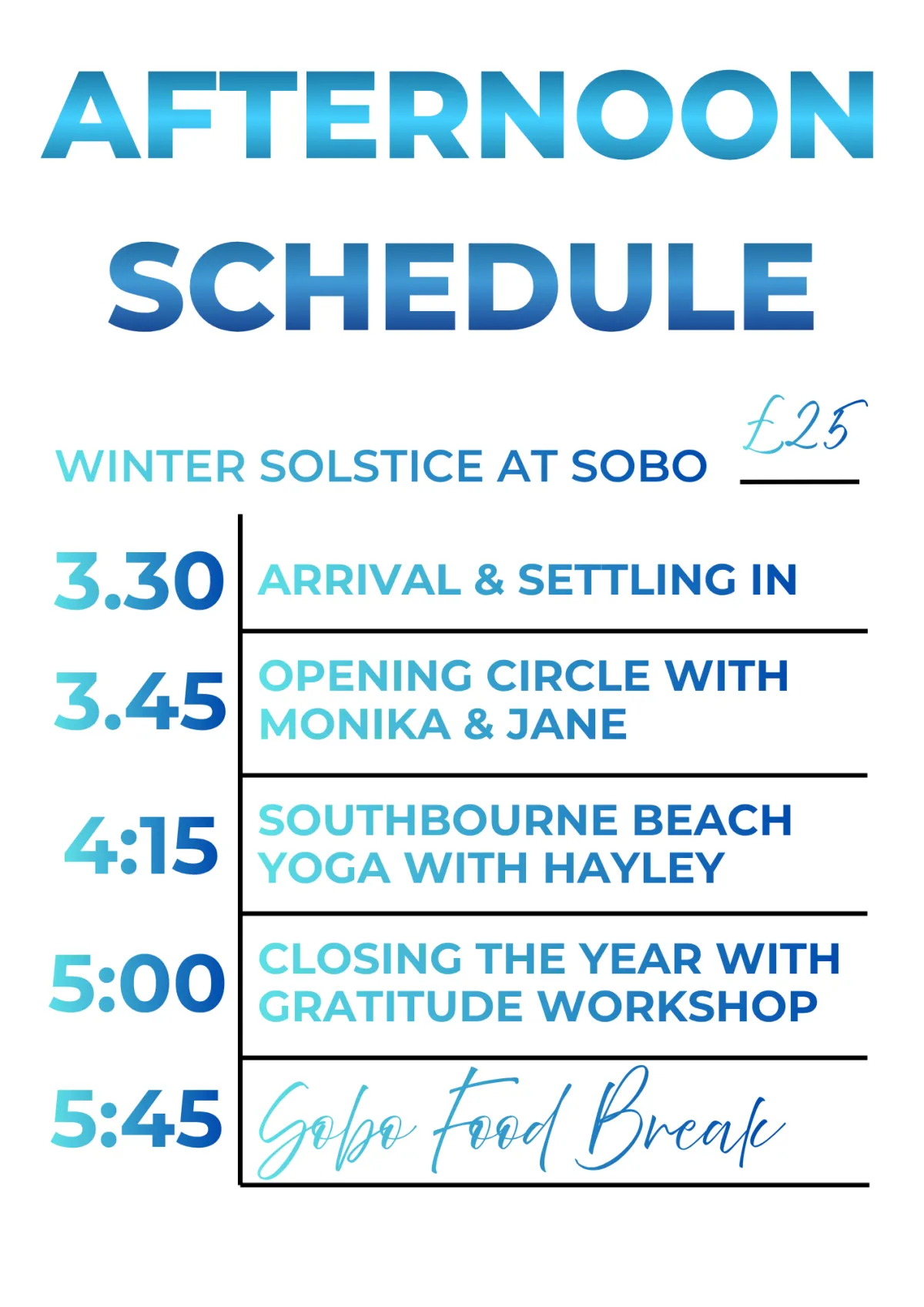 This isn’t about perfection or performance, it’s about presence. Each breath becomes a prayer of gratitude, each movement a reminder of your connection to nature and the cycle of light returning. Together, under the soft glow of the winter Solstice sky, we’ll create warmth through mindful flow, shared energy, and community spirit. A truly grounding way to honour the season and prepare your body for the magic of the evening ahead.
